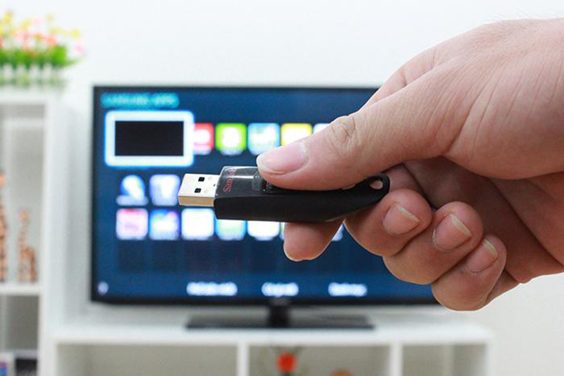 Smart Tivi giúp bạn xem trực tiếp nội dung từ USB mà không phụ thuộc vào thiết bị hỗ trợ nào khác. Bạn có thể cắm trực tiếp vào cổng USB để xem phim, nhạc, xem ảnh trên màn hình Smart Tivi. Định dạng file trên Smart Tivi hạn chế hơn so với định dạng file ở máy tính, thường chỉ đọc được các định dạng hình, nhạc, video, không hỗ trợ đọc văn bản text.