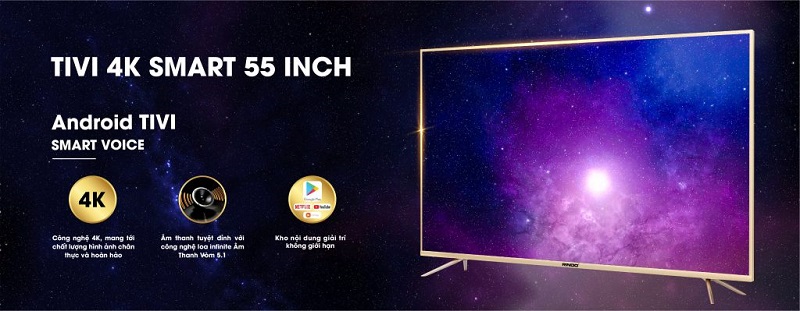 Màn hình LED lên đến 65 inch độ phân giải 4K, sử dụng công nghệ đèn nền LED tiên tiến, cung cấp độ sáng cao, hình ảnh sống động và rõ nét mà vẫn đảm bảo khả năng tiết kiệm điện năng tối ưu. Người dùng có thể xem phim độ phân giải cao 4K rõ nét và không bị hiện tượng mờ nhoè, bóng ma như những dòng Tivi thông thường.